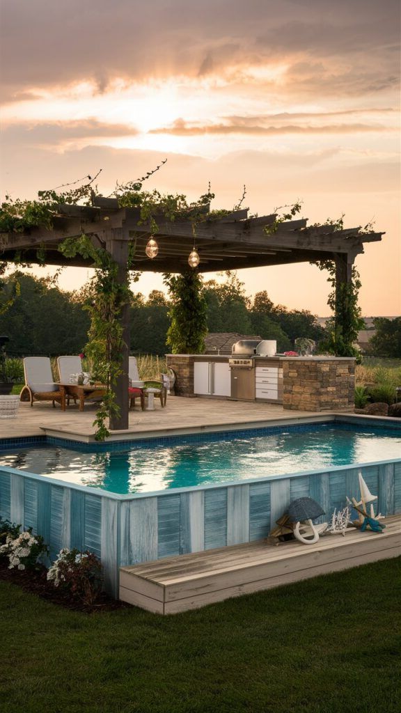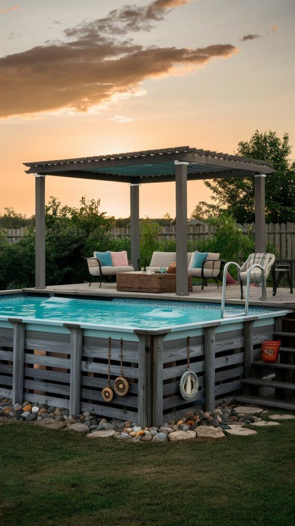 You can make your above-ground pool look more stylish by adding wooden panels to the sides that match your deck. This will give your pool area a nice, consistent look.