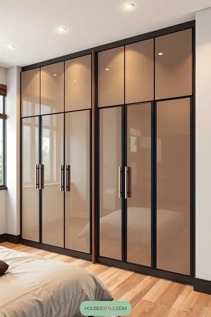 I love having sleek wardrobes in my room – they really add a modern touch and help keep things organized. I always go for glossy finishes because they make the room feel bright and spacious. If your room has white, taupe, or graphite colors and a high-gloss finish, it gives off a luxurious and clean look.