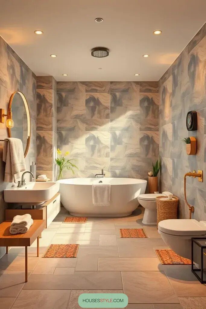 And for safety, I always make sure to choose stylish but slip-resistant flooring like slate or wood-look tiles. It’s all about creating a space that’s both practical and visually stunning.