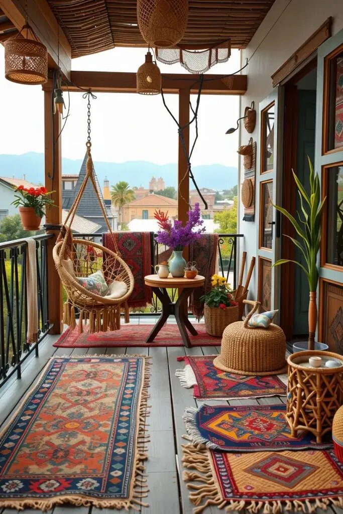I think every bohemian balcony needs a cozy spot to kick back and relax. Personally, I love a hammock or swing chair – they’re not only stylish but also bring a nice, calming vibe to the space. No matter the size of your balcony, there’s always a way to make room for these comfy additions!