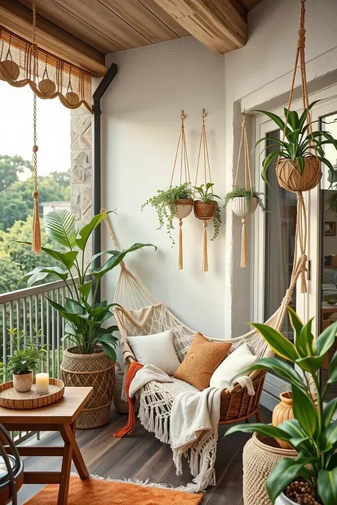 Have you ever considered hanging macrame chairs for cozying up a small room? And for those spacious balconies, have you thought about hanging a hammock between wooden beams or a support frame? I personally like to keep the rope finishes neutral, but adding some earthy tones through dyeing can really make them pop. And don’t forget to throw in some pillows and throws for extra comfort! Outdoor wicker or rattan swing chairs are also a great option, plus they can handle the outdoor elements beautifully. Just some ideas to make your space extra cozy and inviting!