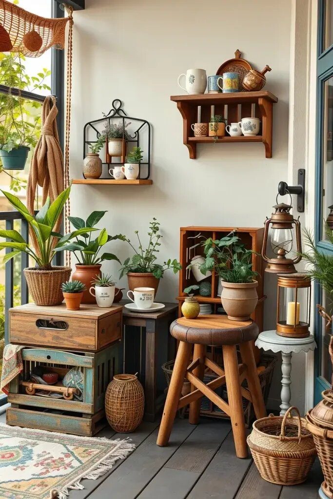 You know, I really believe that being eco-friendly is just as crucial as looking stylish when it comes to decorating a bohemian balcony. One of the key elements of boho style is upcycling, which celebrates the individuality of objects and breathes new life into old items. I’ve had so much fun transforming vintage crates into plant stands, giving an old ladder a new purpose as a herb shelf, and using chipped ceramic bowls to hold candles or succulents. Not only are these pieces good for the environment, but they also add a touch of charm to the space.