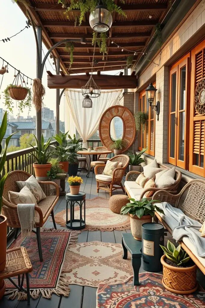 One thing I love about bohemian style is how you can mix and match furniture. When I decorate my balcony, I like to blend wicker, wood, and metal pieces because they all bring different colors and textures that really pop against each other. The end result is a space that feels authentic and full of personality.