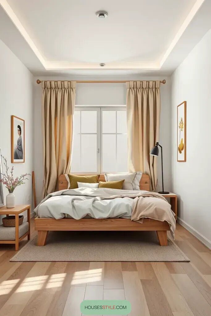 So, to really bring the whole vibe of a Japandi-style bedroom together, I like to throw in some Shoji screens or maybe some simple Scandinavian curtains. The light that filters in through those Shoji screens just really sets the mood, you know? It brightens up the room but still keeps things cozy and private. And those grommet drapes from Scandinavia? They add a nice touch of softness to the space while keeping it all looking clean and tidy. It’s all about the little details, right?