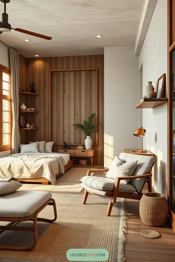 Cozy Japandi Bedrooms: Stylish Wardrobes Included