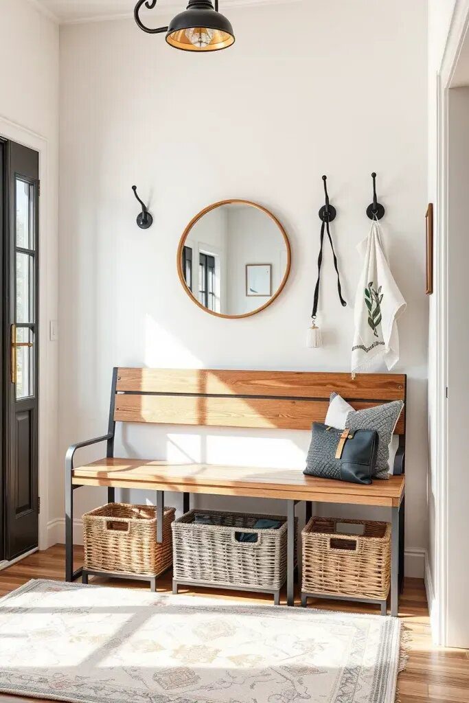 You know, even though it’s a little space, your entryway sets the tone for your whole house. Just throw together a DIY bench, pop up some hooks, and you’ll have a spot for all those bags, coats, and keys in no time. Try using some reclaimed wood and sleek black hooks for a cool look that’ll make a big difference right off the bat.
