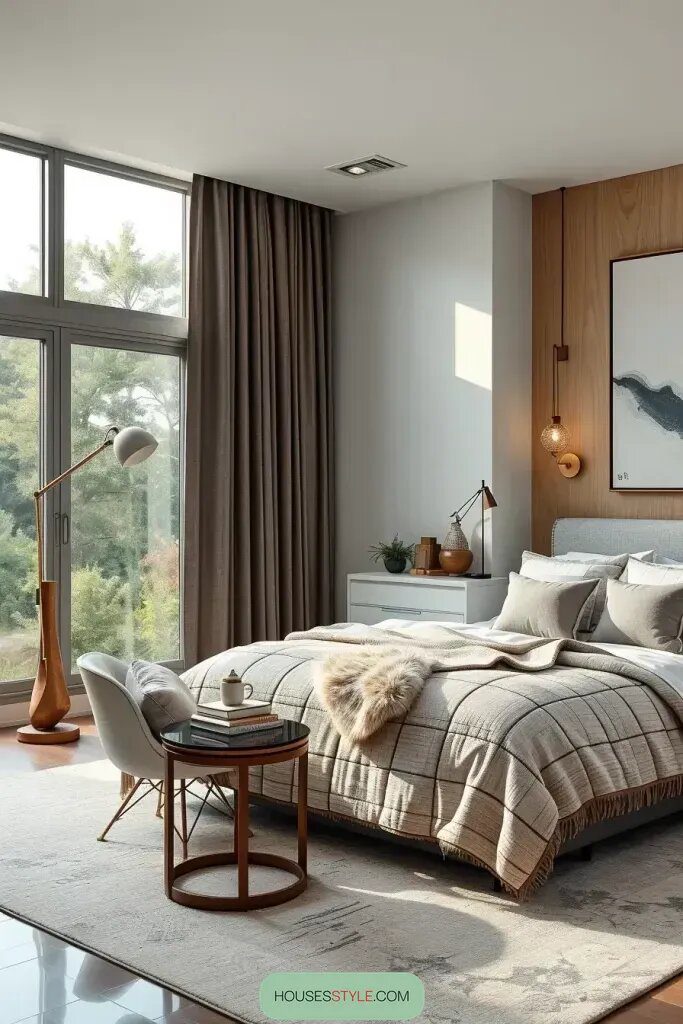 You know what really opens up a bedroom and lets in tons of natural light? Floor-to-ceiling windows! It’s like having a piece of the outdoors inside. This design trend is super popular in city lofts and modern homes, where big glass windows are not just functional but also look really cool.