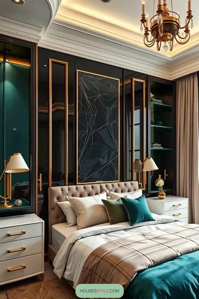 Have you ever thought about using statement designer wallpapers with geometric patterns in your master bedroom? It can really bring a touch of elegance and color to the room!