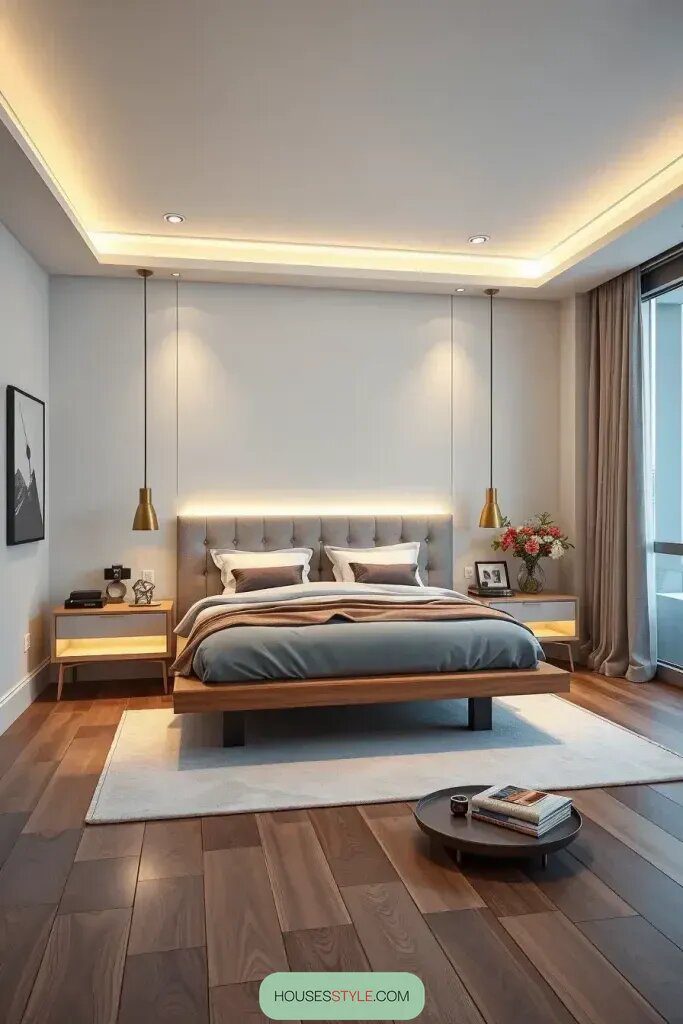 I love to create modern bedroom designs that are not only stylish but also super practical. Imagine having built-in speakers in your walls, a smart thermostat to control your room’s temperature, and cool under-bed lighting that turns on when you step out of bed!