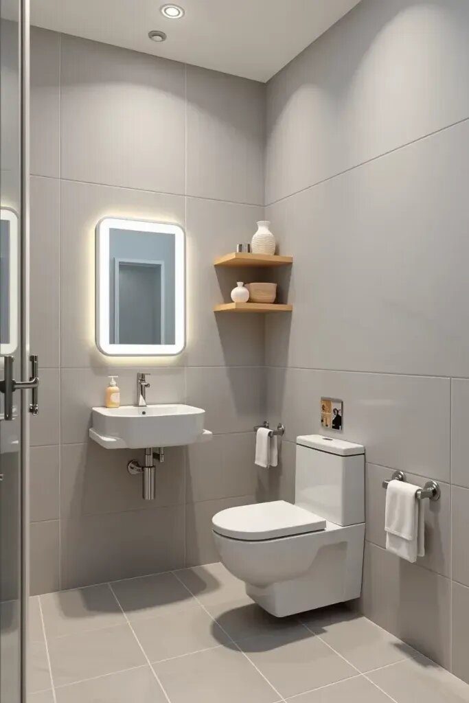 In a regular setup, I’d go for a floating vanity with soft edges, a round wall mirror, and some cool, modern lighting like LED strips or chrome sconces. To add some personality, I’d also include a circular walk-in shower with colored glass panels that give it a unique touch without taking up too much space. Smart faucets with digital temperature displays are a must for easy use and to keep the futuristic vibe going strong. It’s all about blending convenience and style in the bathroom!