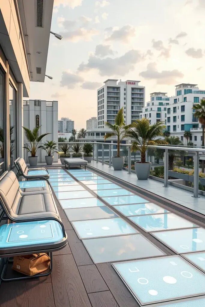 I think these balconies are so cool because the floors are like living design experiments that react when you touch them. They give off a really futuristic vibe and totally transform the balcony into a fun and interactive space. Plus, the panels often light up or change colors, which is super cool to see!