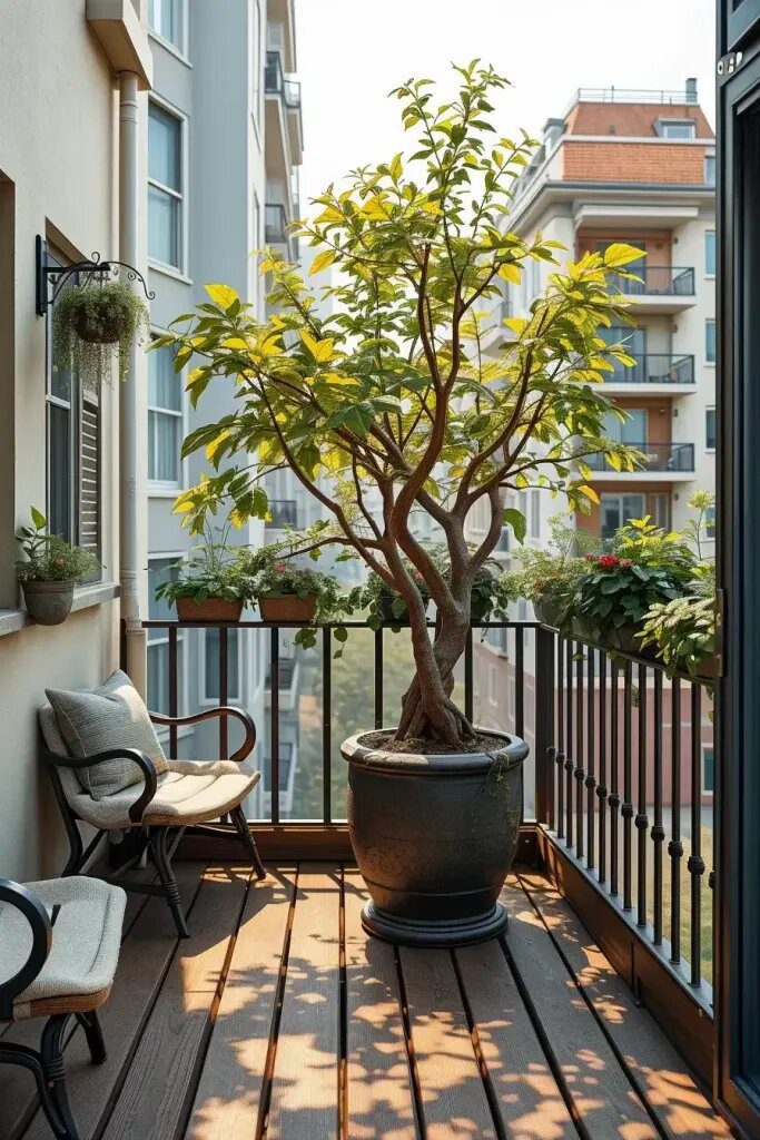 I absolutely love the idea of having trees on balconies as living planters. It’s such a beautiful and poetic balcony design that brings a touch of nature to urban living. When these trees are properly supported and integrated into the space, they create a vertical garden that connects us to the natural world. Not to mention, they provide shade, a place to relax, and a sense of peace and calm in the middle of a bustling city. It’s truly a wonderful way to bring a little bit of the outdoors into our homes.
